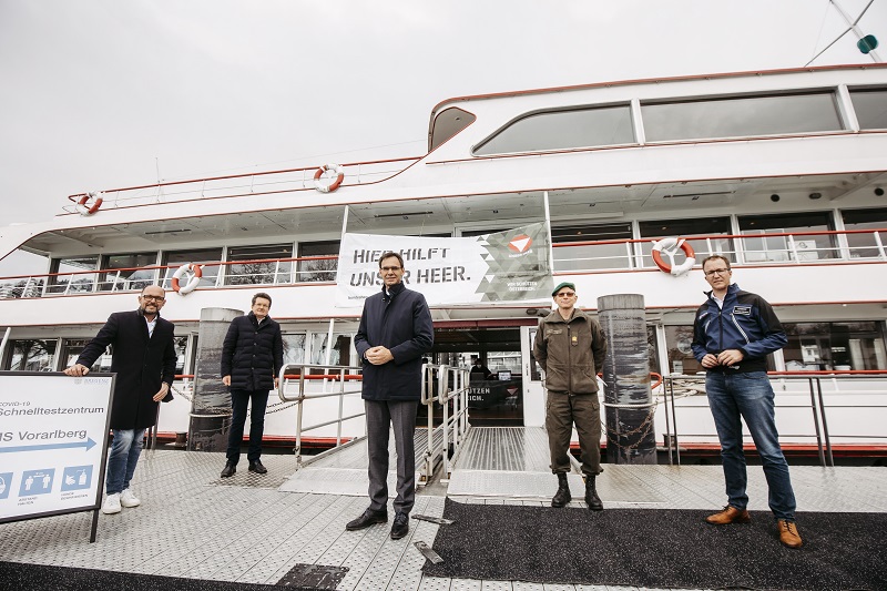 Das Österreichische Bundesheer unterstützt das Land Vorarlberg mit zusätzlichen Teststationen. Dafür werden 60 Soldaten des Hochgebirgs-Jägerbataillons 23 aus Bludesch für die Standorte in Bregenz, Lauterach, Hohenems, Götzis, Frastanz und Ludesch abgestellt. Das Motorschiff „Vorarlberg“ ist eine der sechs Teststationen des Österreichischen Bundesheeres. Das Schiff wird von den Vorarlberg Lines zur Verfügung gestellt. Durchgeführt wird ein Antigen-Test – „ein SARS-CoV-2-Test zur Eigenanwendung unter Beaufsichtigung“, welcher für 48 Stunden ab der Abnahme eine Zutrittsberechtigung für körpernahe Dienstleistungen und die Gastronomie bietet.