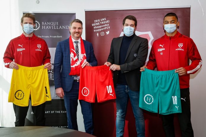 Der FC Vaduz ist sehr glücklich, einen weiteren gewichtigen Partner in der FCV-Familie begrüssen zu dürfen. Die Banque Havilland (Liechtenstein) AG wird dabei eine längerfristige Partnerschaft beim FC Vaduz bis 2023 eingehen. «Es freut uns enorm, dass wir mit der Banque Havilland (Liechtenstein) AG einen in Vaduz ansässigen Partner gewinnen konnten, der sich für den FC Vaduz begeistert. Wir wollen die sportlichen Emotionen rund um den FCV mit dem Unternehmen teilen und sind stolz, dass sich das Unternehmen zum FCV bekennt», so Patrick Burgmeier, Geschäftsführender Präsident des FC Vaduz. «Der FC Vaduz ist ein toller Botschafter mit grosser Reichweite, welcher regional stark verankert ist. Es freut uns deshalb sehr, dass wir als Co-Sponsor den FC Vaduz in den nächsten 2 ½ Saisons begleiten und den eingeschlagenen Weg mit unserem Engagement unterstützen können», so Marc Arand, CEO der Banque Havilland (Liechtenstein) AG zur neuen Partnerschaft.