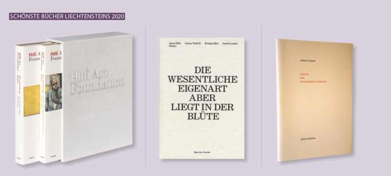 Die Jury, welcher Patrick Gimmi, Barbara Schrag, Elisabeth Sele und Rolf Vieli angehörten, hat drei Bücher mit dem Titel «Schönste Bücher Liechtensteins 2020» und drei weitere mit «Lobender Anerkennung» ausgezeichnet. Die Aufgabe der Jury war es, Grafik, Bild und Satz, Typografie, die Qualität des Drucks und des Einbands sowie die verwendeten Materalien der Bücher zu beurteilen. Zum ersten Mal in der 20-jährigen Geschichte dieses Wettbewerbs werden die ausgezeichneten Werke ausserdem im April 2021 in der Stadtbibliothek Dornbirn ausgestellt.