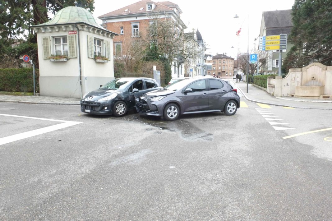 Am Montag (15.03.2021), um 14:30 Uhr, ist es auf der Kirchstrasse zu einen Zusammenstoss zwischen zwei Autos gekommen. Ein 38-jähriger Mann wurde dabei leicht verletzt. Es entstand Sachschaden in der Höhe von rund zwanzigtausend Franken.