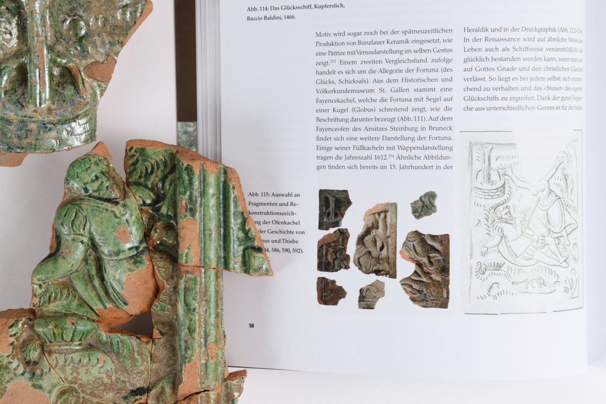 Das zweibändige Werk ergänzt die im Jahr 2016 erschienenen Bände 1 bis 3. Während diese sich den Baubefunden unter der heutigen Pfarrkirche und den urgeschichtlichen und römischen Funden sowie der mittelalterlichen und neuzeitlichen Geschirrkeramik widmeten, werden in den beiden neuen Bänden die Ofenkeramik und die Kleinfunden aus Metall und Glas vorgestellt.Allein die rund 16’000 Ofenkeramikfragmente spannen einen zeitlichen Bogen von über 800 Jahren. Die ältesten Stücke zählen zu den frühesten Nachweisen von Kachelöfen in unserer Region. Unter den figural verzierten Ofenkacheln aus dem späten Mittelalter und der frühen Neuzeit finden sich die bislang einzigartigen Darstellungen der antiken Liebestragödie von Pyramus und Thisbe.