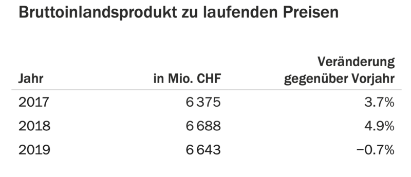 Bruttoinlandsprodukt liegt bei CHF 6.6 Mrd.