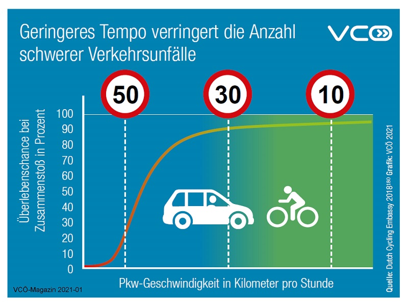 Tempo 30 für mehr Sicherheit: Bei Tempo 30 nehmen Unfallhäufigkeit und Unfallschwere deutlich ab gegenüber Tempo 50. Nur schon wegen der Reaktionszeit verlängert sich der Anhalteweg eines Autos mit zunehmender Geschwindigkeit um ein Vielfaches.