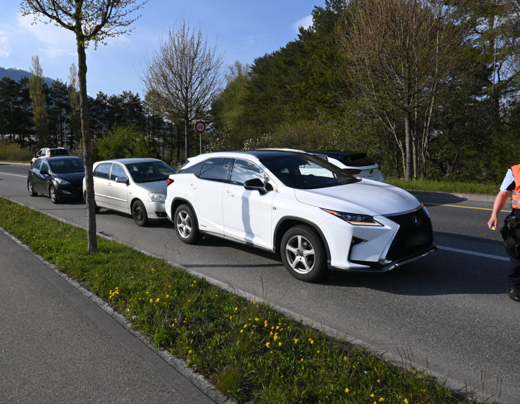 Gegen 17:10 Uhr fuhr in Balzers ein Fahrzeuglenker auf der Hauptstrasse Gagoz in östliche Richtung, als das Auto vor ihm verkehrsbedingt anhalten musste. In der Folge kollidierte er mit diesem und schob es in ein davorstehendes Fahrzeug. An allen drei Autos entstand Sachschaden.