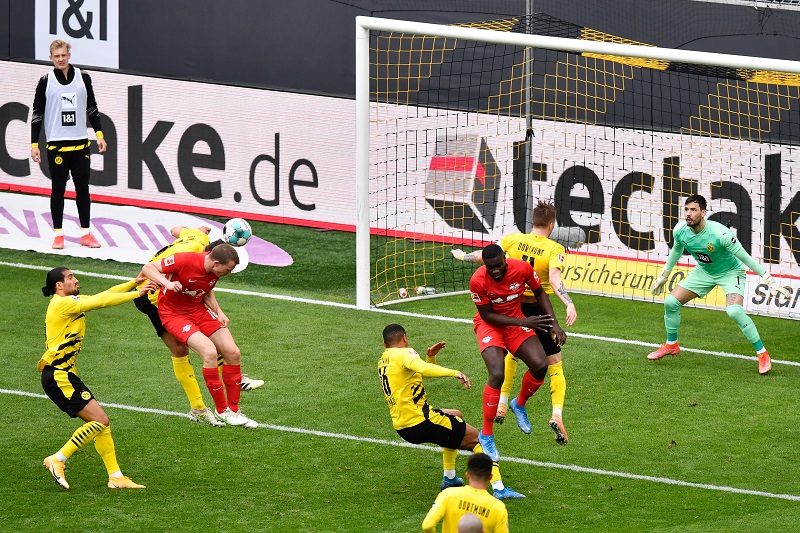 Marco Reus (7. Spielminute) und Jadon Sancho (51. und 87.) trafen für die Dortmunder zum umkämpften 3:2-Sieg. Aufseiten der Gäste erzielten Lukas Klostermann (63.) und Dani Olmo (77.) die Tore. Durch die Leipziger Niederlage sind die Bayern an der Spitze der Tabelle nicht mehr einholbar und vorzeitig Meister.