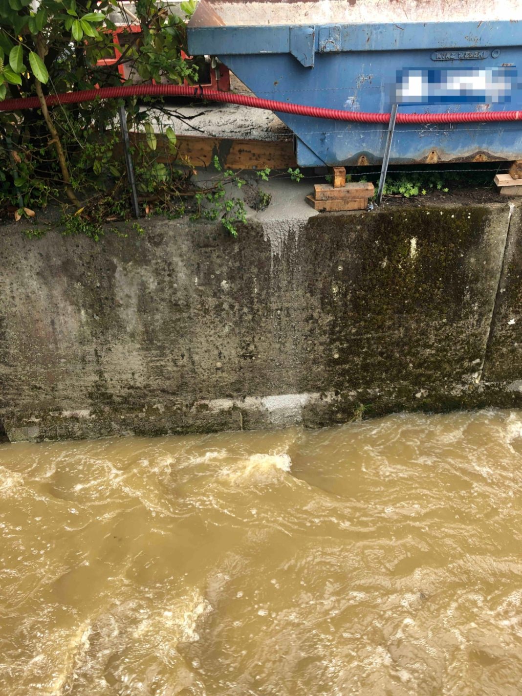 Auf der Baustelle musste überschüssiger Beton zur Trocknung und den späteren Abtransport zwischengelagert werden. Da das dazu benutzte Gefäss schräg stand, lief der noch flüssige Beton aus und gelangte in den angrenzenden Dorfbach. Nachdem ein Arbeiter dies bemerkt hatte, verständigte er unverzüglich die Polizei und verhinderte ein weiteres Auslaufen. Zudem rückten die örtliche Feuerwehr sowie das Amt für Umwelt an den Ereignisort aus. Es wurden Wasserproben genommen. Diese ergaben, dass der Grad der Verschmutzung für die Fische im Bach nicht bedenklich sein dürfte.