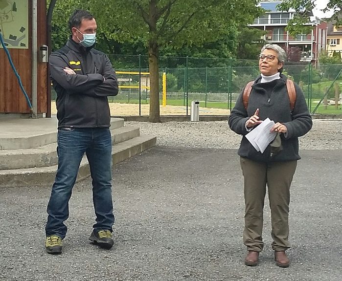 Patrick Marxer, der Werkhofmeister, erklärt im Rahmen des Spaziergangs, dass die Gesamtfläche der Rabatten und Blumenwiesen der Grösse dreier Fussballfelder entspricht.