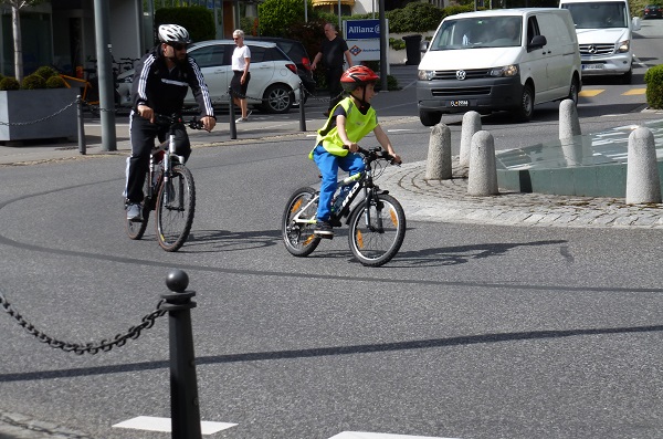 In der ersten Stunde üben die Kinder die Fahrtechnik und die Erwachsenen werden mit den Grundregeln von sicherem Rad fahren auf der Strasse bekannt gemacht. Nach der von der Elternvereinigung offerierten Stärkung folgt die von ausgebildeten Instruktoren geleitete Quartierrundfahrt in Gruppen. Im realen Verkehr wird sicheres Radfahren geübt mit den Schwerpunkten Linksabbiegen und Kreisel fahren.