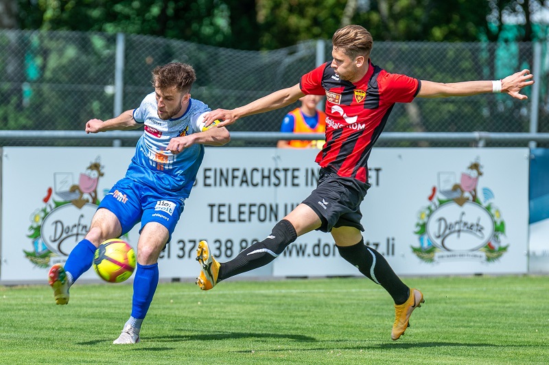 USV-Captain Nico Thöni zeigte auch in diesem Spiel eine starke Leistung. Sportpark Eschen/Mauren, 26.6.2021. Fotos: Jürgen Posch