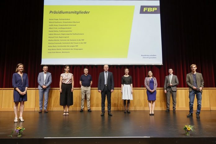 Nachdem das FBP Präsidium am 19. Mai Rainer Gopp als Kandidaten für das Präsidentenamt nominierte und der Landesvorstand diese Benennung am 27. Mai bestätigte, war es heute am Parteitag, diese Nomination zu bestätigen. Dazu versammelten sich die Mitglieder der FBP physisch im SAL in Schaan, nachdem sich viele monatelang nicht mehr persönlich getroffen hatten. Ebenfalls standen Erneuerungswahlen im Präsidium zur Abstimmung. Neben Gopp waren Marcel Kaufmann aus Balzers als Vizepräsident Oberland sowie Judith Hoop aus Gamprin zur Vizepräsidenten Unterland nominiert, zudem als neuer Vorsitzender der Jungen FBP Anton Beck aus Triesenberg und Leila Frick aus Balzers als Beisitzerin. Neu nehmen auch Regierungschef-Stellvertreterin Sabine Monauni und Regierungsrat Manuel Frick von Amtes wegen Platz im Parteipräsidium.