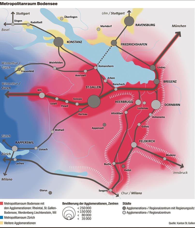 775'000 Menschen, 4 Länder, 1 Region: Mit einem Metropolitanraum Bodensee will die Ostschweiz (inkl. Liechtenstein) im internationalen Standortwettbewerb in die Premium League aufsteigen.
