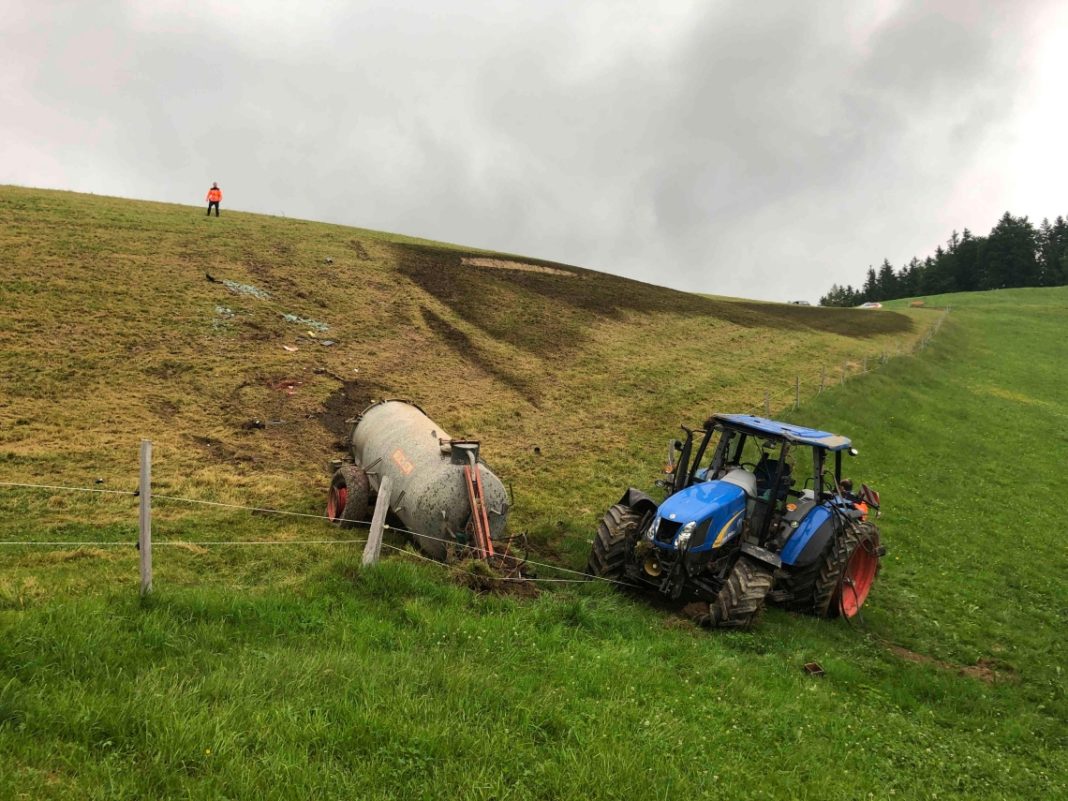 Ein 57-jähriger Mann arbeitete mit einem Traktor mit angehängtem Druckfass auf einer Wiese. Aus derzeit unbekannten Gründen kippte der Traktor zur Seite und stürzte die abfallende Wiese hinunter. Der Traktorfahrer wurde dabei unbestimmt verletzt. Der Rettungsdienst brachte ihn ins Spital. Am Traktor entstand Sachschaden in Höhe von mehreren tausend Franken.