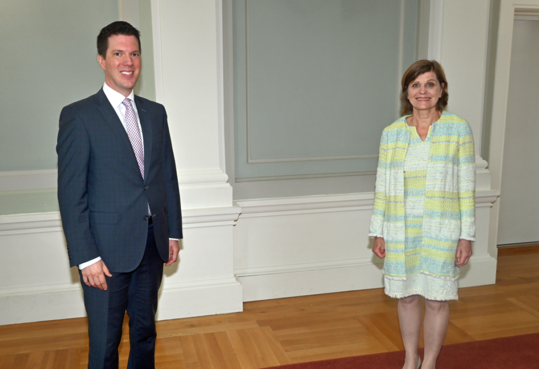 Regierungsrat Manuel Frick empfing am Mittwoch, 14. Juli 2021 die Vorarlberger Landesstatthalterin Barbara Schöbi-Fink zu einem Arbeitsgespräch in Vaduz über die grenzüberschreitende Zusammenarbeit im Kulturbereich.
