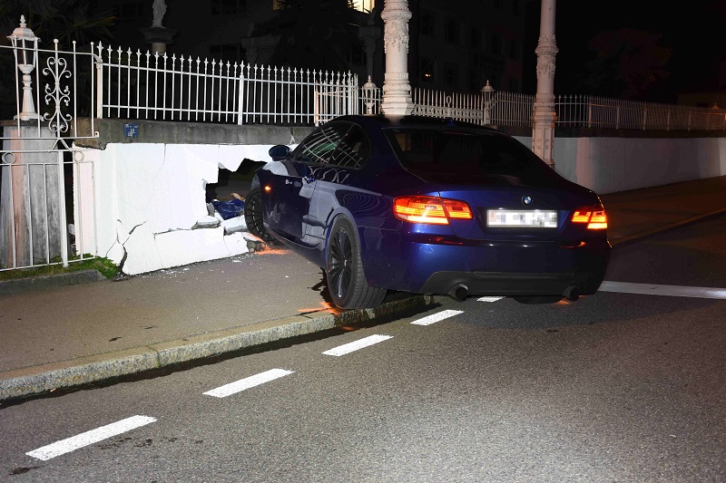 Der 27-Jährige fuhr mit seinem Auto auf der St.Gallerstrasse von Rorschach Richtung Goldach. Auf Höhe der Verzweigung mit der Florastrasse fuhr der Mann über die Gegenfahrbahn, überfuhr das Trottoir und kollidierte frontal mit einer Steinmauer. Dabei zog er sich eher leichte Verletzungen zu und musste durch die Rettung ins Spital gebracht werden. Der Autofahrer wurde in der Folge als fahrunfähig eingestuft. Die Staatsanwaltschaft des Kantons St.Gallen verfügte bei ihm die Entnahme einer Blut- und Urinprobe. Der Führerausweis wurde dem Mann auf der Stelle abgenommen. Es entstand Sachschaden von mehreren zehntausend Franken.