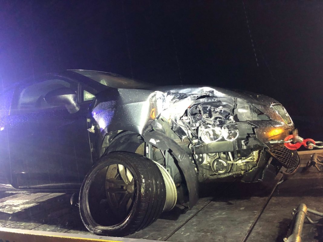 Der 21-Jährige fuhr mit seinem Auto auf der Rheinstrasse von Buchs Richtung Schaan. Auf der Höhe der Polizeistation Buchs überfuhr das Auto eine Verkehrsinsel und prallte in einen Baum, welcher dadurch gefällt wurde. Trotz massiver Beschädigungen am Auto setzte der Mann die Fahrt fort und fuhr in die Autobahneinfahrt der Autobahn A13 Richtung Sargans. Zum Unfallzeitpunkt befand sich eine Polizeipatrouille bei der Polizeistation Buchs und konnte den Unfall hören. Sie konnten das Verlassen der Unfallstelle durch den Unfallverursacher beobachten. Die Polizisten folgten dem Auto und konnten es im Bereich der Autobahneinfahrt auf dem Pannenstreifen antreffen. Der 21-jährige Autofahrer war unverletzt. Er wurde in der Folge als fahrunfähig eingestuft. Die Staatsanwaltschaft des Kantons St.Gallen verfügte bei ihm die Entnahme einer Blut- und Urinprobe. Der Führerausweis wurde dem Mann auf der Stelle abgenommen. Das Auto erlitt Totalschaden.
