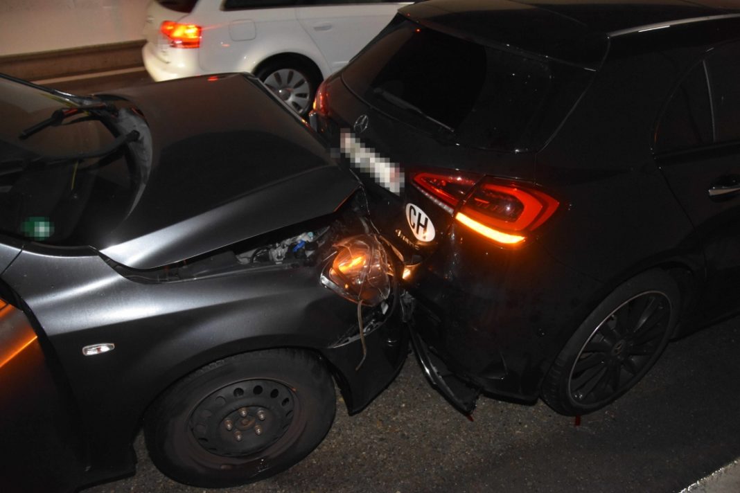 Ein 55-jähriger Mann fuhr mit seinem Auto auf der Autobahn A3 von Walenstadt in Richtung Zürich. Hinter ihm fuhren eine 25-jährige Autofahrerin sowie ein 54-jähriger Autofahrer mit drei Mitfahrenden. Im Tunnel Quarten musste der 55-Jährige sein Auto aufgrund eines Staus wegen vorangegangener Unfälle anhalten. Dies bemerkte die 25-Jährige, bremste und hielt hinter dem vorderen Auto an. Der 55-jährige Autofahrer bemerkte das Bremsmanöver zu spät und sein Auto prallte gegen das Heck des stillstehenden Autos der Frau. Durch den heftigen Aufprall wurde das mittlere Auto gegen das Vorderste geschoben. Die 25-jährige Autofahrerin sowie die 48-jährige Mitfahrerin des hintersten Autos wurden leicht verletzt und vom Rettungsdienst ins Spital gebracht. An den Autos entstand Sachschaden in der Höhe von mehreren zehntausend Franken.