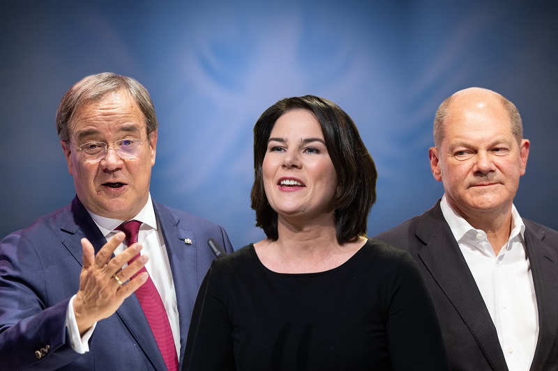 FOTOMONTAGE: Noch vor der Bundestagswahl treffen die Kanzlerkandidaten drei Mal bei Triellen im Fernsehen aufeinander. Am Sonntag, den 29. August, treffen die drei Kanzlerkandidaten im ersten Wahl-Triell aufeinander. Die Diskussionsrunde wird um 20.15 Uhr bei RTL und ntv uebertragen. Die Kanzlerkandidaten zur Bundestagswahl 2021: v.li:Armin LASCHET (CDU),Annalena BAERBOCK, (Buendnis 90/die Gruenen),Olaf SCHOLZ (SPD).