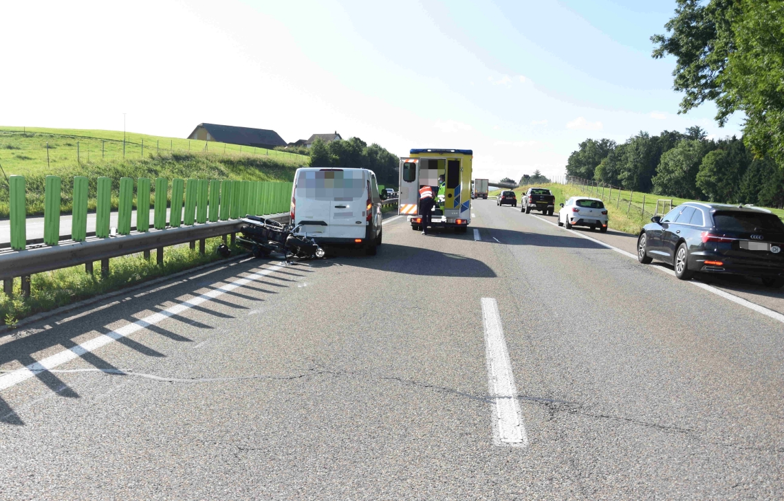 Niederwil: Am Mittwoch (18.08.2021), um 17:20 Uhr, ist es auf der Autobahn A1 zu einer Kollision zwischen einem Motorrad und einem Lieferwagen gekommen. Ein 35-jähriger Motorradfahrer wurde dabei unbestimmt verletzt. Die Rettung brachte ihn ins Spital.