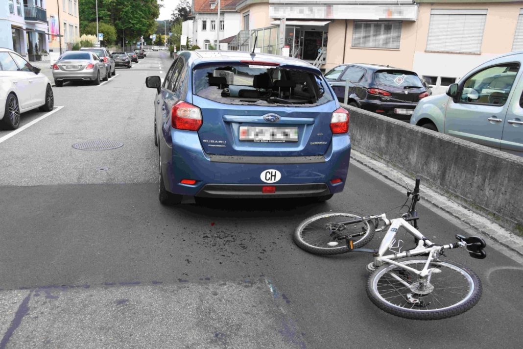 Ein 70-jähriger Mann fuhr mit seinem Auto auf der Unteren Bahnhofsstrasse Richtung Rudenzburg. Gleichzeitig fuhr ein 19-jähriger Mann mit seinem Velo hinter dem 70-Jährigen in dieselbe Richtung. Aufgrund des Verkehrs musste der 70-Jährige sein Auto bis zum Stillstand abbremsen. Der 19-Jährige bemerkte dies zu spät. Trotz eingeleiteter Vollbremsung kam es zur Kollision zwischen dem Velo und dem Auto. Dabei prallte der 19-Jährige gegen das Heck des Autos und stürzte anschliessend zu Boden. Er wurde dabei verletzt. Der Rettungsdienst brachte ihn ins Spital. Es entstand Sachschaden in der Höhe von mehreren tausend Franken.
