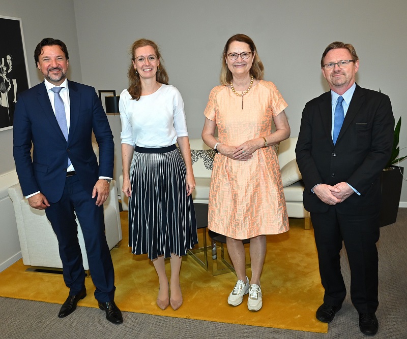Vaduz – Am Donnerstag, 16. September 2021 waren die drei College Mitglieder der EFTA-Überwachungsbehörde (ESA) Bente Angell-Hansen (Präsidentin und norwegisches College-Mitglied), Frank J. Büchel (liechtensteinisches College-Mitglied) und Högni Kristjánsson (isländisches College-Mitglied) aus Anlass des bevorstehenden Endes der Mandatsperiode des ESA-College auf Besuch in Liechtenstein.