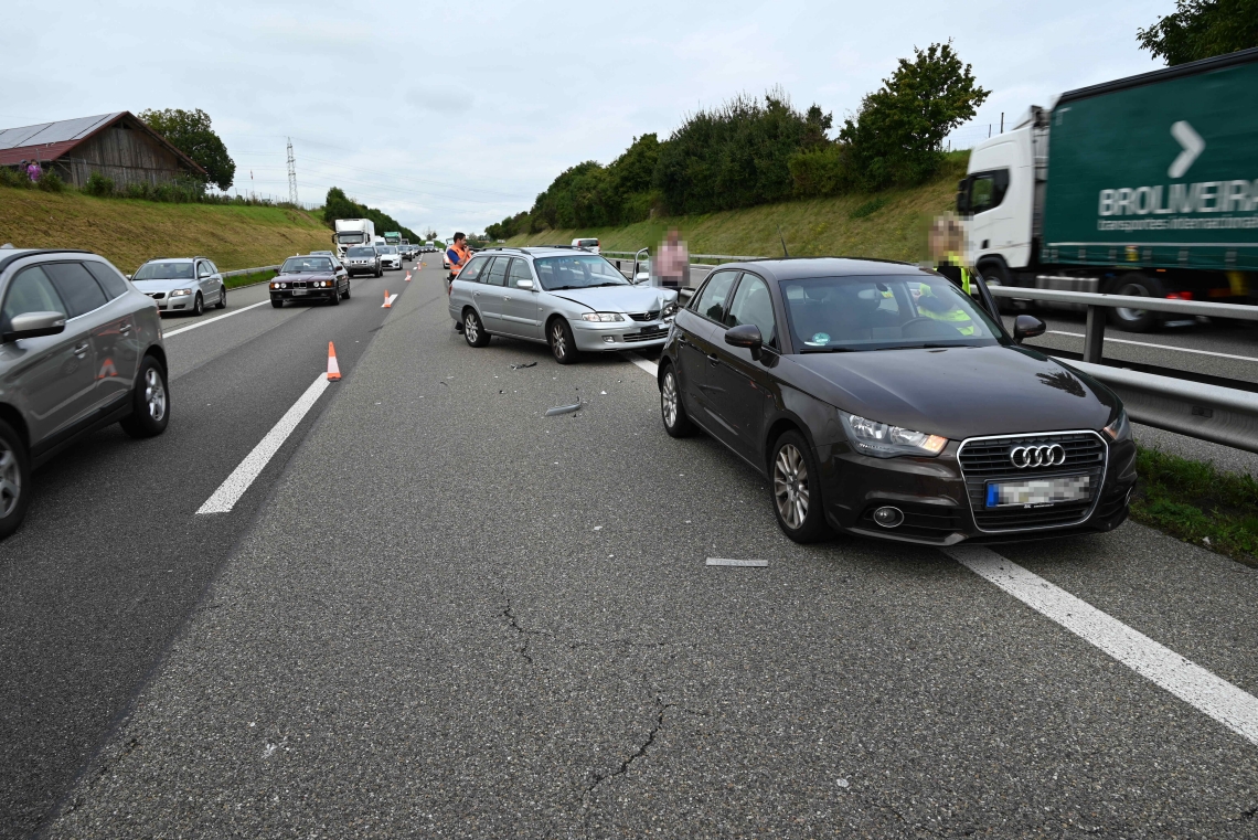 Um 09:25 Uhr fuhr eine 28-jährige Frau mit ihrem Auto auf der A1 von Uzwil Richtung Gossau. Hinter ihr fuhr ein 26-jähriger Mann in dieselbe Richtung. Auf Höhe Niederwil musste die 28-Jährige ihr Auto aufgrund des Staus des vorangegangenen Unfalls bis zum Stillstand abbremsen. Der 26-jährige Mann bemerkte dies zu spät. Trotz eingeleiteter Vollbremsung und einem Ausweichmanöver kollidierte das Auto des 26-Jährigen mit dem Auto der 28-Jährigen. Beide Autos blieben auf dem Überholstreifen stehen. Der 26-jährige Mann wurde leicht verletzt. Er konnte selbständig einen Arzt aufsuchen. Es entstand Sachschaden von mehreren tausend Franken.