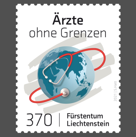 Ärzte ohne Grenzen ist eine private Hilfsorganisation mit internationaler Ausrichtung. Sie wurde 1971 in Paris gegründet und besteht grösstenteils aus Ärzten und Pflegefachkräften. Die Mitarbeiter leisten in über 70 Ländern der Welt medizinische Hilfe – überall dort, wo Menschenleben bedroht sind. In Anerkennung ihrer bahnbrechenden humanitären Arbeit auf mehreren Kontinenten wurde die Initiative 1999 mit dem Friedensnobelpreis ausgezeichnet. Die Philatelie Liechtenstein ehrt die Ärzte ohne Grenzen aus Anlass ihres 50-jährigen Bestehens mit der Sondermarke «Weltweit ohne Grenzen» (Wertstufe CHF 3.70).
