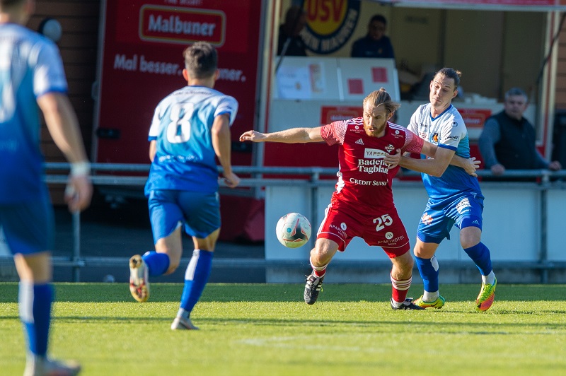 Bemerkungen: USV ohne Dorta, Mitrovic, Noah Graber (verletzt), Kaufmann (privat), Alexander Marxer und Carigiet (II. Mannschaft). Baden ohne Stump, Mooser (verletzt), D’Ovidio, Weilenmann, Cirelli, Herger, Brack, Gauchat und Veljko Maksimovic (nicht im Aufgebot). Gaye trifft den Pfosten (47.). Rote Karte für Muff (46.+ – Notbremse). Gelb-rote Karte für Capone (60. – Reklamieren). Verwarnungen für Ladner (46.+ – Reklamieren), Capone (60. – Foul) und Gaye 89. (Foul). Eckenverhältnis: 4:2 (4:2).
