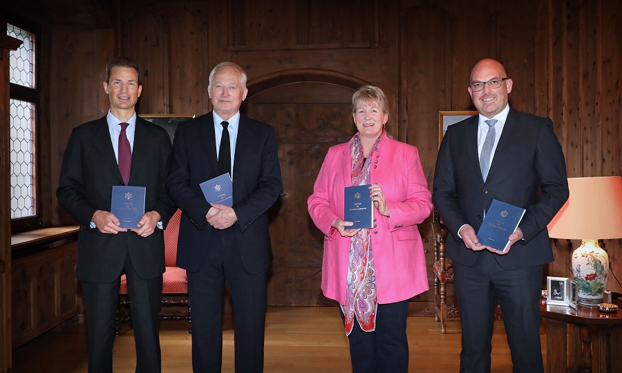 Vaduz (ots) – Anlässlich des 100-jährigen Bestehens der Verfassung erscheint eine Jubiläumsausgabe der Verfassung mit historischem Sonderteil. Die ersten Exemplare wurden am Montag, 4. Oktober 2021 von Amtsleiterin Marion Frick-Tabarelli auf Schloss Vaduz an S.D. Fürst Hans-Adam II. von und zu Liechtenstein und S.D. Erbprinz Alois von und zu Liechtenstein sowie Regierungschef Daniel Risch überreicht.