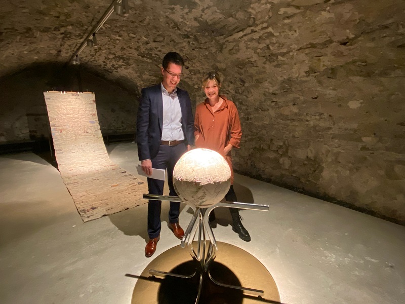 Foto: Regierungsrat Manuel Frick und Künstlerin Ursula Wolf.