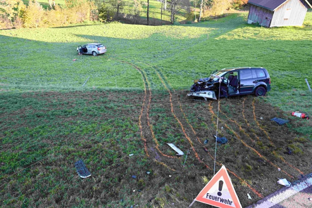 Eine 48-jährige Frau fuhr mit ihrem Auto auf der Rickenstrasse von Wattwil Richtung St.Gallenkappel. Höhe Bünt fuhr sie mit ihrem Auto auf die linke Fahrbahn, um ein Fahrzeug zu überholen. Während dem Überholmanöver fuhr ihr ein korrekt entgegenkommendes Auto entgegen. Darin befanden sich ein 42-jähriger Fahrer mit einer 33-jährigen Frau und einem 12-jährigen Jungen als Beifahrer. Folglich kam es zur Frontalkollision zwischen den beiden Autos. Beide Autos wurden durch den Aufprall einige Meter ins anliegende Tobel hinuntergeschleudert. Dabei verletzen sich alle vier am Unfall beteiligten Personen. Der 42-jährige Fahrer des entgegenkommenden Autos musste mit unbestimmten Verletzungen durch die Rega ins Spital geflogen werden. Die anderen verletzten Personen mussten vom Rettungsdienst ins Spital gebracht werden. An den Autos entstanden Totalschaden.