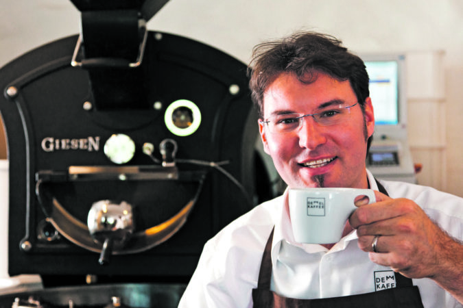 Einen Namen machen musste sich der Oberbayer zunächst trotz seiner preisgekrönten Idee und des idealen Standorts dennoch. «Ich hatte kein grosses Werbebudget. Meine Kunden haben aber bald gemerkt, dass mein Kaffee gut schmeckt und bekömmlich ist. Denn für meine Produkte kommen nur die besten Kaffeebohnen aus der ganzen Welt infrage. Ich degustiere sie oft selbst vor Ort im Grünmuster, im Röstmuster und im Profil in der Tasse. Wenn ich nach allen drei Beurteilungen sage ‹Das ist es!›, dann kaufe ich die Bohnen.» Daraufhin veredelt Peter Demmel sie mit seinen fünf Mitarbeitern im eigens dafür entwickelten Flow-Roast-Prozess. Durch den gleichmässigen Unterdruck rösten die Bohnen sehr sanft und schonend, sodass sie einen grossen Teil der natürlichen Bitterstoffe abgeben und ein ganz besonderes Lebens- und Genussmittel entsteht. «Das sprach sich bald im privaten Bereich, in der Gastronomie und in den Büros herum, und so lebte ich von Anfang an und bis heute zu einem grossen Teil von der Mund-zu-Mund-Werbung. Schliesslich setzt sich Qualität immer noch durch», sagt Peter Demmel.