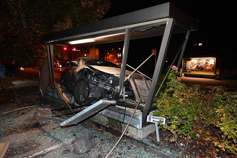 Niederuzwil – Am Samstag (23.10.2021), um 00:15 Uhr, ist es auf der Bahnhofstrasse zu einem Unfall mit einem Auto gekommen, welches mit einer Bushaltestelle kollidiert ist. Dabei entstand Sachschaden von mehreren zehntausend Franken.