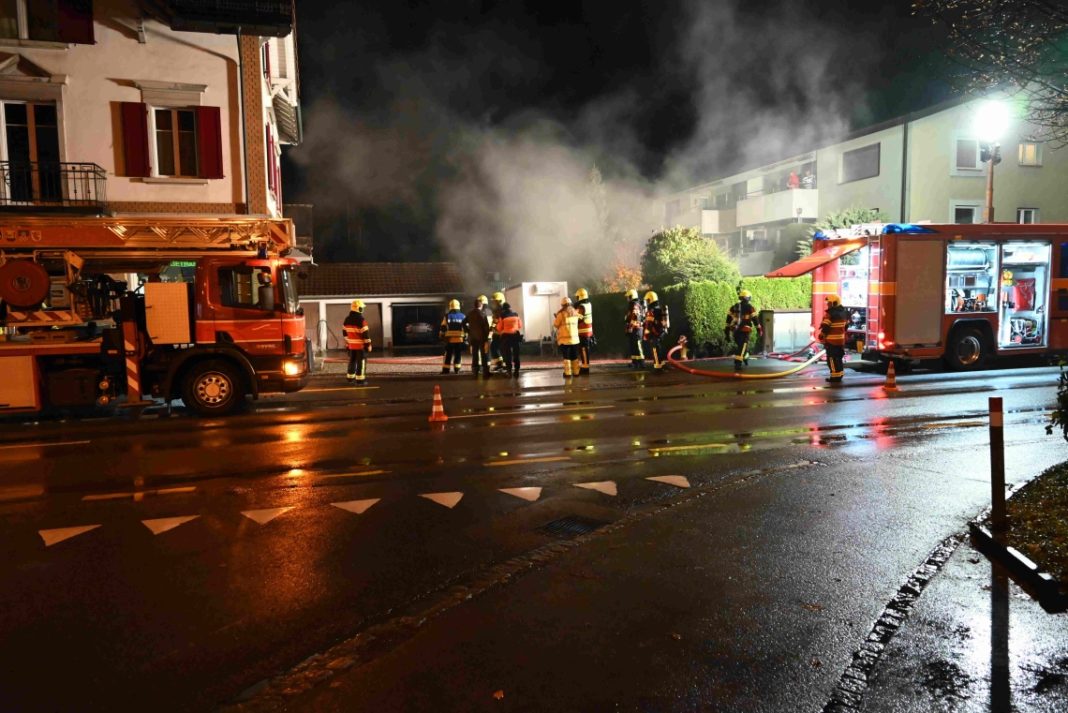 Kurz nach 5 Uhr ging bei der Kantonalen Notrufzentrale die Meldung über einen Brand eines Gartenunterstandes ein. Dieser war direkt an ein Mehrfamilienhaus angebaut.