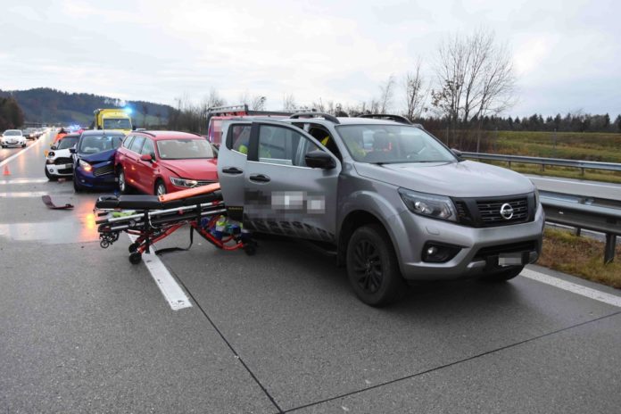 Rüthi: Am Montagmorgen (08.11.2021), kurz vor 7 Uhr, ist es auf der Autobahn A13 zwischen Oberriet und Sennwald innert wenigen Minuten zu vier Verkehrsunfällen gekommen. Dabei waren 12 Fahrzeuge involviert. Der Sachschaden beläuft sich auf mehrere zehntausend Franken. Ein Mann, welcher ins Spital eingeliefert werden musste, konnte dieses nach dem Mittag wieder verlassen. Einzelne Beteiligte werden sich allenfalls noch ärztlich untersuchen lassen. Als Unfallursachen stehen mangelnde Aufmerksamkeit oder ungenügender Abstand beim Hintereinanderfahren im Vordergrund. Durch die Unfälle kam es zu Verkehrsbehinderungen. Teilweise konnte der Verkehr nur über den Pannenstreifen geführt werden.