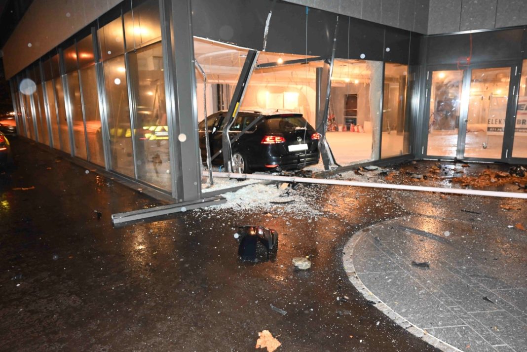Im Verlaufe der Fahndung wurde eine Patrouille der Eidgenössischen Zollverwaltung in St.Margrethen auf ein Auto mit polnischem Kennzeichen aufmerksam. Sie wollten dieses kontrollieren, verloren es dann aber aufgrund der überhöhten Geschwindigkeit des Fluchtautos aus den Augen. Kurze Zeit später meldeten Anwohner, dass in St. Margrethen, auf der Walzenhauserstrasse beim Mineralbadkreisel, ein Auto mit polnischem Kontrollschild über die Grünfläche fuhr, einen Kandelaber touchierte und schliesslich in eine Hauswand prallte. Das Auto wurde stark beschädigt und verkeilte sich im Gebäude. Dabei entstand Sachschaden in der Höhe von mehreren zehntausend Franken. Der unbekannte Fahrer entfernte sich, ohne sich um die Schadenregulierung zu kümmern. Nach ersten Ermittlungen besteht ein Zusammenhang zwischen dem Unfallauto und dem Einschleichediebstahl in Staad.