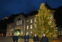 Weihnachtsbaum der Gemeinde Eschen vor dem Regierungsgebäude
