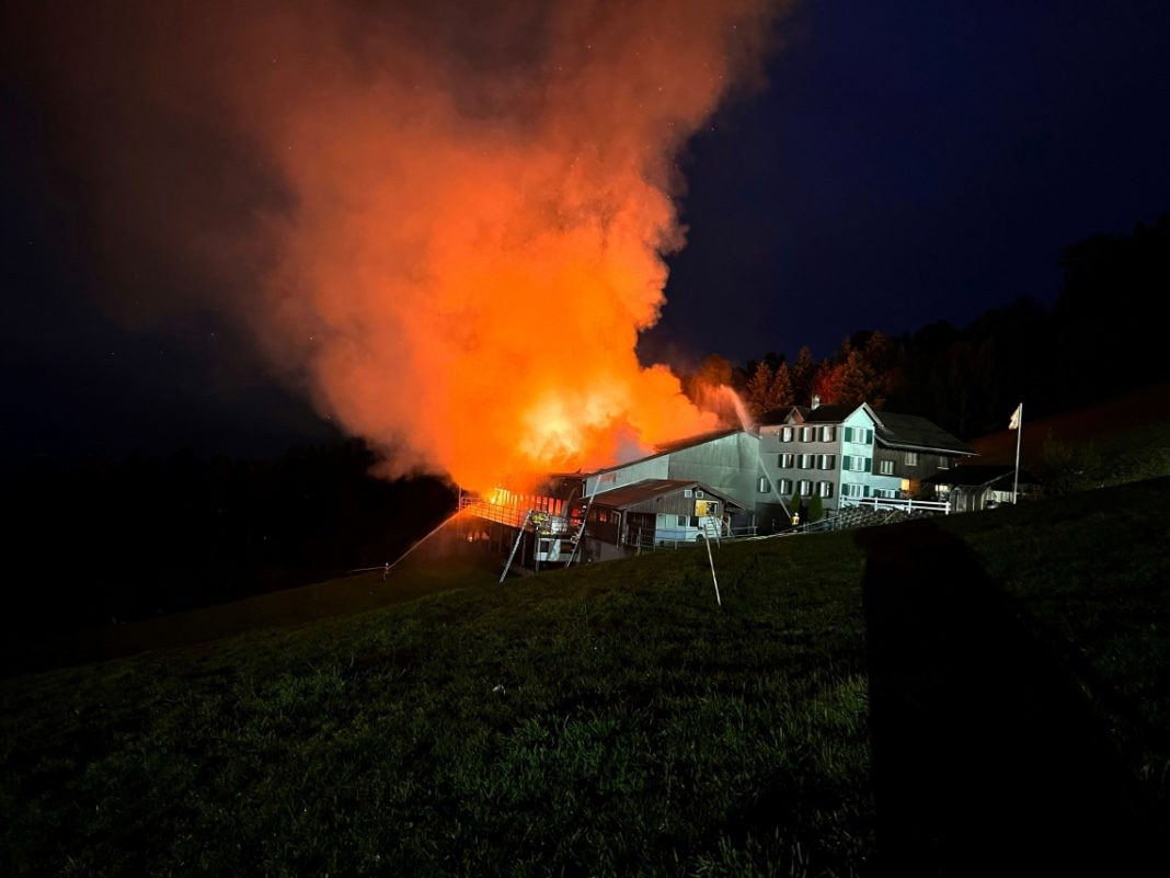 Untereggen – Am Donnerstag (18.11.2021), kurz vor 04:30 Uhr, hat die Kantonale Notrufzentrale mehrere Meldungen über einen brennenden Stall an der Rüti erhalten. Die Feuerwehr und Patrouillen der Kantonspolizei St.Gallen fanden den Stall in Vollbrand vor. Die Löscharbeiten dauern noch an. Der Sachschaden beläuft sich auf mehrere hunderttausend Franken.