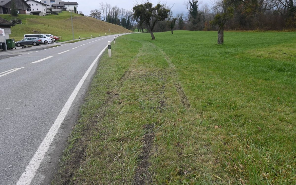 Im Zeitraum von ca. 08:00 bis ca. 19:00 Uhr kollidierte ein unbekannter Fahrzeuglenker mit einem Fahrzeug der Marke ‘VW, Audi, Skoda oder Seat’, auf der Hauptstrasse ‘Ruggeller Strasse’ in Gamprin, mit einem auf Höhe der Bushaltestelle ‘Jedergass’ angebrachten Leitpfosten. Durch die Kollision geriet der Fahrzeuglenker ins rechtsseitig angrenzende Wiesland und befuhr dieses auf einer Länge von ca. 120 Metern.