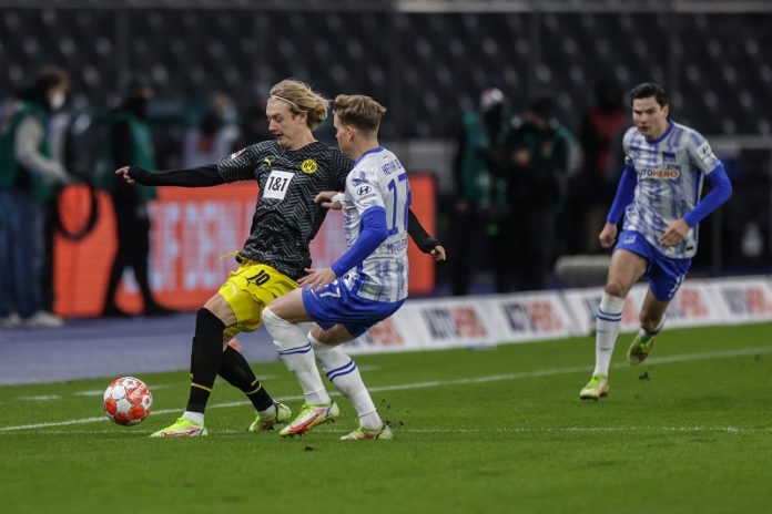 Ishak Belfodil (51. Minute) und Marco Richter (57.) drehten am Samstag (18.12.2021) im Berliner Olympiastadion innerhalb von Minuten den 0:1-Rückstand durch Julian Brandt (31.). Erneut Richter (69.) sorgte mit seinem zweiten Treffer für die Vorentscheidung. Dortmunds Anschlusstreffer von Steffen Tigges (83.) kam zu spät.
