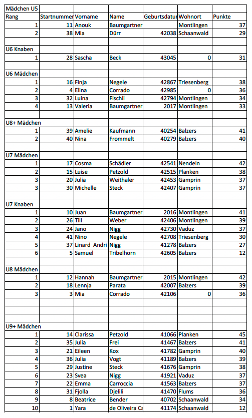 Bei der Rangverkündigung durfte dann jeder Teilnehmer ein LKW Plüschhäschen, LKW Lämpchen, sowie ein Schoggihäsli und Fürstenwürfel von der Bäckerei Wanger entgegennehmen. Die 1.-3. Platzierten jeder Kategorie erhielten zusätzlich jeweils noch eine tolle Medaille und durften auf das Podest klettern.