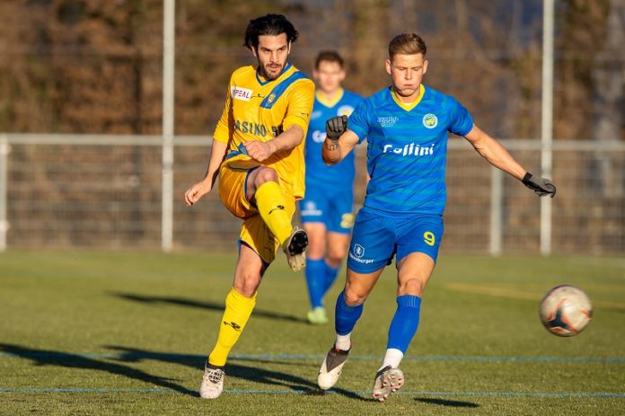 Der bisherige Assistenztrainer und frühere Profikicker Michele Polverino steht dem FCB wegen der misslichen Tabellenlage wieder als Spieler zur Verfügung. Foto: Jürgen Posch, am 29.1.2022 FCB-VfB Hohenems.