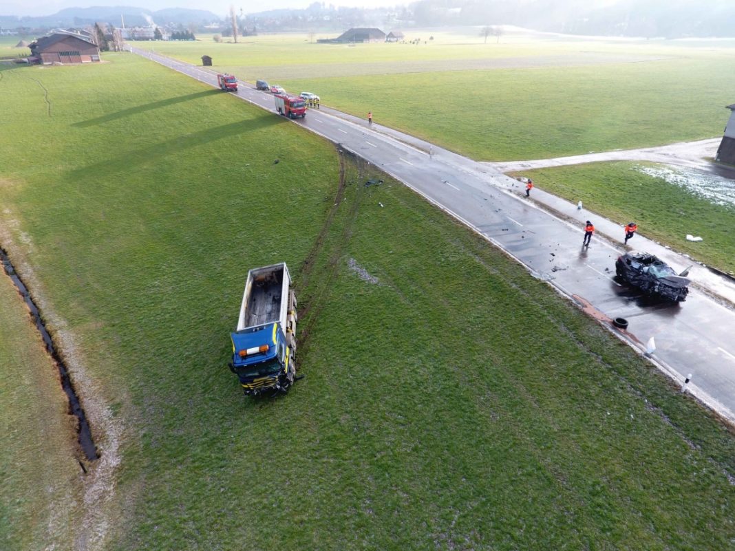 Am Freitagmorgen (28.01.2022), kurz vor 08:30 Uhr, ist es auf der Staatsstrasse zu einer Frontalkollision zwischen einem Auto und einem Lastwagen gekommen. Eine junge Frau verstarb auf der Unfallstelle. Die Strasse musste für mehrere Stunden gesperrt werden. Die zuständige Feuerwehr leitete den Verkehr um.