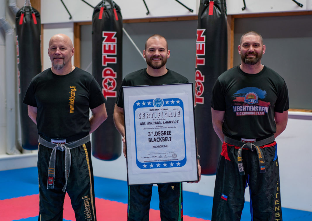 Dem Vize-Weltmeister Michael Lampert wurde eine grosse Ehre zu teil. Der erst kürzlich vom Spitzensport zurückgetretene Michael Lampert wurde vom WAKO Weltverband und dem Liechtensteiner Kickboxverband mit dem 3. Dan Schwarzgurt für seine langjährigen und besonderen Verdienste im Kickboxsport ausgezeichnet.