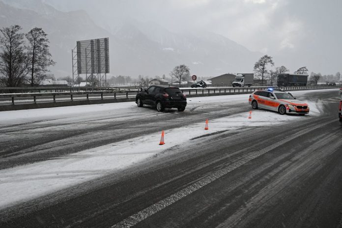 Eine 31-jährige Kantonspolizistin und ihr Beifahrer rückten auf der schneebedeckten A13 an einen Verkehrsunfall aus. Im Bereich des Verzögerungsstreifens der Ausfahrt in Richtung St.Gallen geriet ihr Auto ins Schleudern. Es überquerte die Autobahn und kam auf der Fahrbahn zum Stillstand. Dort kollidierte das Auto einer 39-jährigen Frau mit dem stehenden Polizeiauto. Alle drei Personen mussten durch die Rettung ins Spital gebracht werden. Sie konnten dieses zwischenzeitlich wieder verlassen.