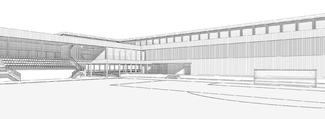 Die Grundkonzeption des Bauprojekts hat sich dadurch insofern geändert, als es neu nicht mehr eine freistehende Tribüne geben wird, sondern einen an das Hauptgebäude angebauten Tribünenflügel. Dieser erschliesst auf zwei Seiten die beiden neuen Hauptspielfelder, von denen eines aus Kunstrasen und eines aus Naturrasen besteht.