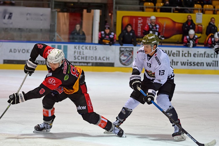 Eine spannende Angelegenheit war das Aufeinandertreffen der BEMER VEU Feldkirch mit dem HC Meran/o Pircher. Die beiden Mannschaften begegneten sich auf Augenhöhe und hielten das Tempo hoch. Schlussendlich jubelten die VEU Cracks in der Overtime über ihren elften Sieg in Folge. Matchwinner war VEU Kapitän Dylan Stanley. Einen perfekten Einstand feierte Jesper Eriksson mit dem Ausgleichstreffer.