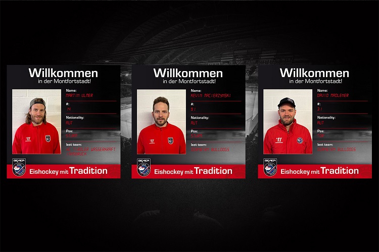 Martin Ulmer kommt vom HC Tiroler Wasserkraft Innsbruck. Kevin Macierzynski und David Madlener von den Bulldogs Dornbirn. Nach dem vorzeitigen Meisterschaftsende wollen alle drei Spieler die Eishockey Saison in der Alps Hockey League fortsetzen und die VEU im Kampf um eine Playoff Teilnahme unterstützen.