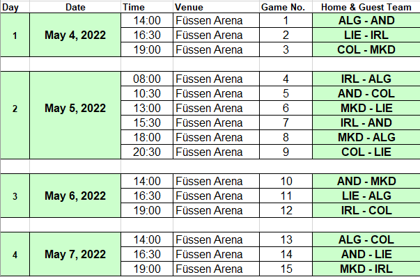 Vom 4-.bis 7. Mai 2022 findet in Füssen der IIHF Development Cup statt. Die Gegner der liechtensteinischen Eishockey-Nationalmannschaft sind Irland, Kolumbien, Andorra, Portugal und Algerien. Wie der LEIV-Präsident Karl Otto Gämperli mitteilt, wird für das Spiel gegen Andorra am Samstag, 7. Mai eine Fanfahrt nach Füssen organisiert.