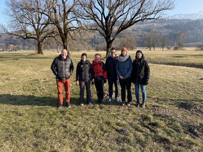 Bild: Vertreterinnen und Vertreter der Stadt Feldkirch, der Gemeinde Ruggell, des Regionsmanagements sowie des Fürstentum Liechtensteins beim Austausch im Europaschutzgebiet