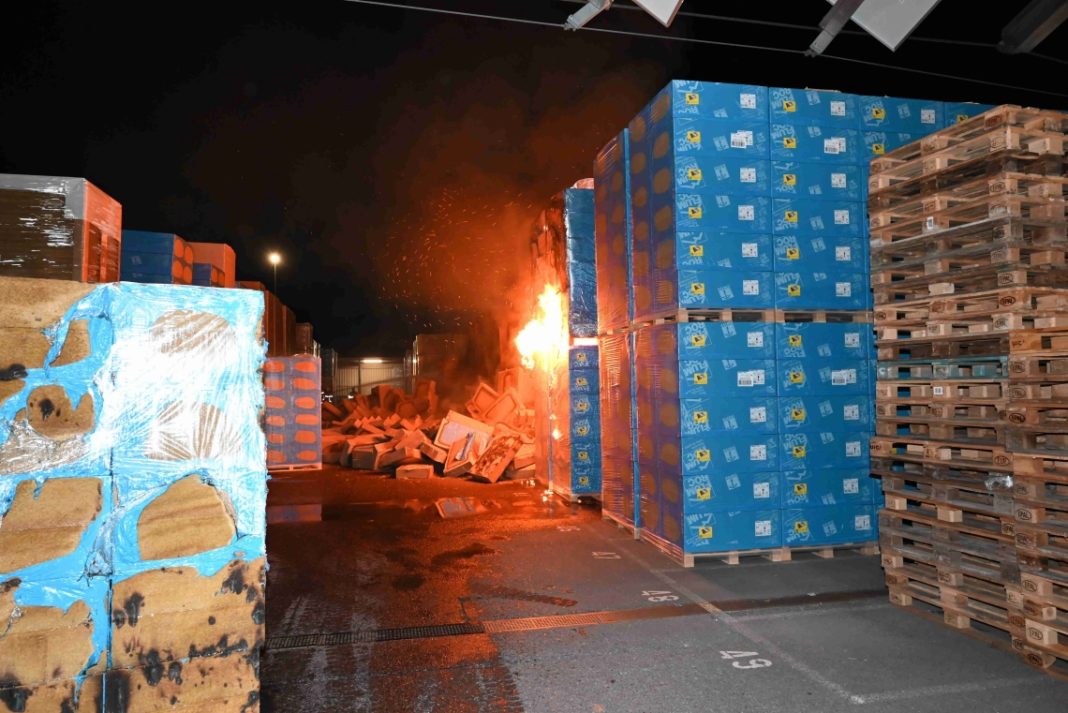 Flums: Am Freitag (11.03.2022), kurz nach 03:10 Uhr, hat die Kantonale Notrufzentrale St.Gallen die Meldung von einem Brand an der Polistrasse erhalten. Wie sich herausstellte, fingen aus unbekannten Gründen rund 200 mit Isolationsplatten befüllte Paletten Feuer. Die Feuerwehr brachte den Brand unter Kontrolle.